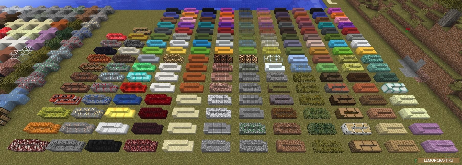 Декоративный мод Pl3xStairs добавит в игру 166 новых ступенек для ваших лестниц. Новые ступени можно будет делать из различных материалов, от песка до динамита. Так же поражает количество текстур, доступных в моде.